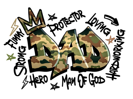 This camo print graphic will be the perfect gift for the dad in your life. Loaded with affirmations and sporty enough that any dad would love!